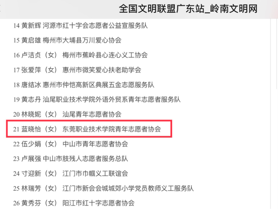 商贸学院蓝晓怡同学获“广东省最美志愿者”称号