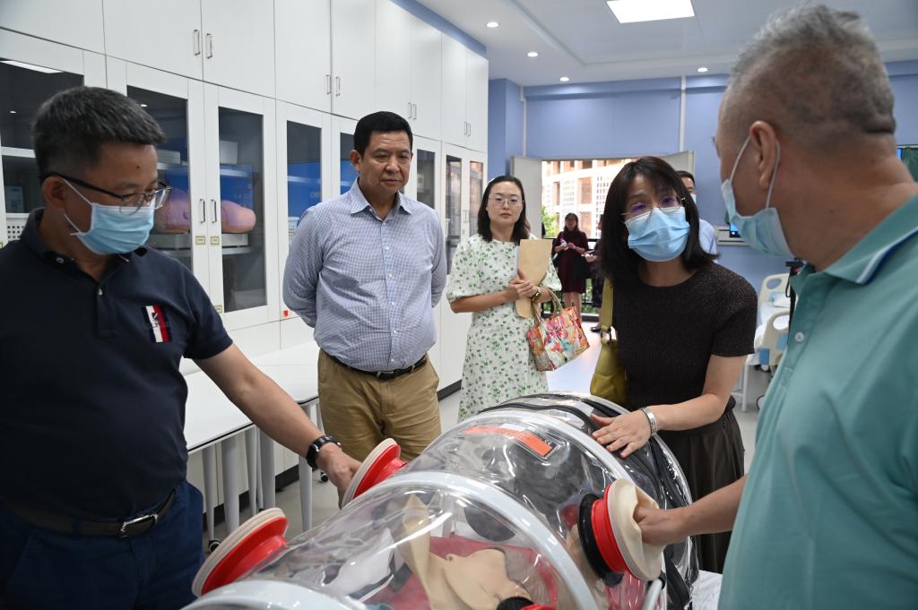 与会人员还一同参观了卫生健康学院的基护实验室、内科实训室、健康评估实训室以及康复实训室等地。