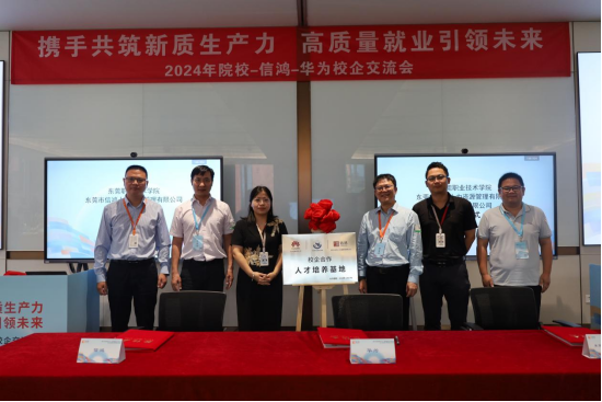 8月22日,2024年院校-信鸿-华为校企交流会在东莞松山湖华为团泊洼制造基地召开,东莞华为机器有限公司、东莞市信鸿实业发展有限公司相关负责人以及来自全国24所院校的校领导、相关代表70余人共聚一堂研讨“携手共筑新质生产力、高质量就业引领未来”。我校党委书记司琪受邀带队参加。