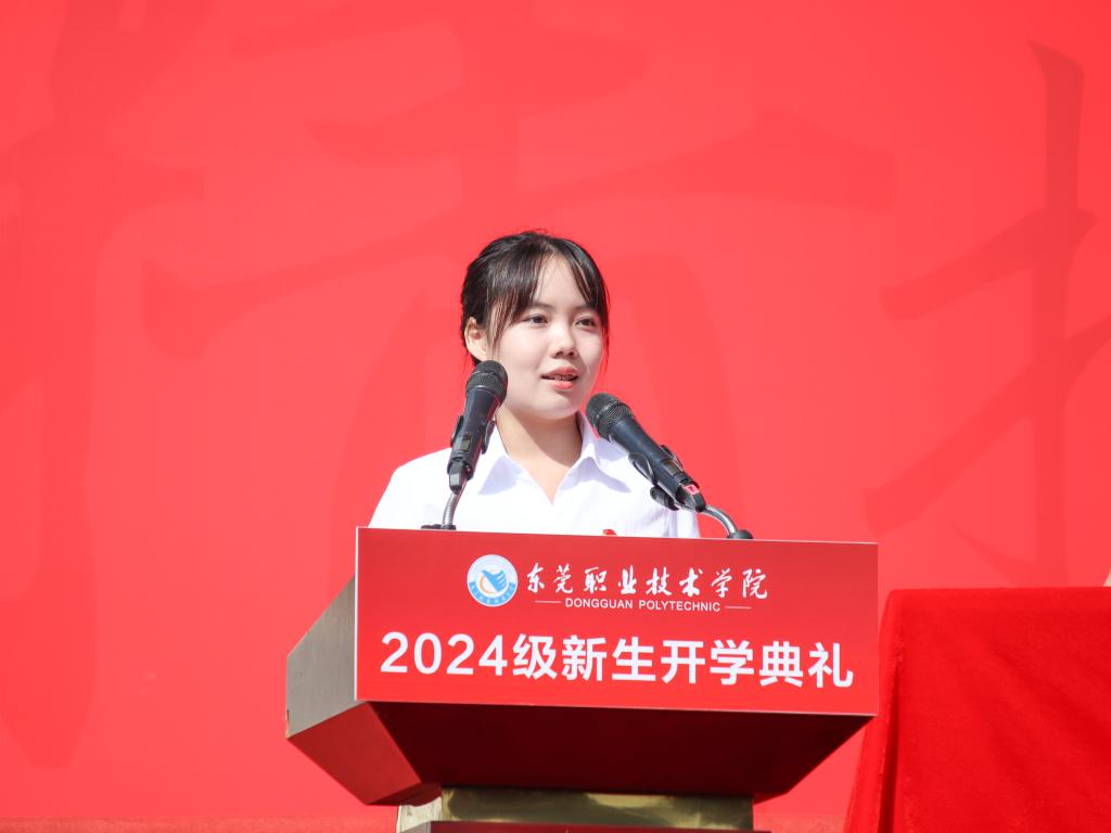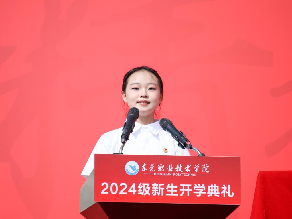 在雄壮庄严的国歌声中,典礼正式拉开帷幕。商贸学院李申仪作为在校生代表上台发言,她表示,东职院作为国家双高计划建设单位,提供了更多发展的机会与平台,希望同学们牢记八字校训,努力拼搏,在青春这一篇章写出属于自己的精彩。2024级新生代表学前教育与人文学院郑炫玲在发言中表示,只要保持积极向上的心态,勇于面对挑战,不断探索与实践,就一定能够在成长的道路上收获满满。
