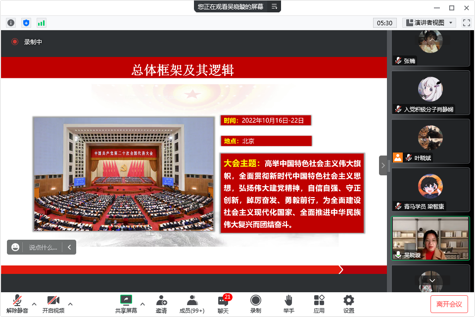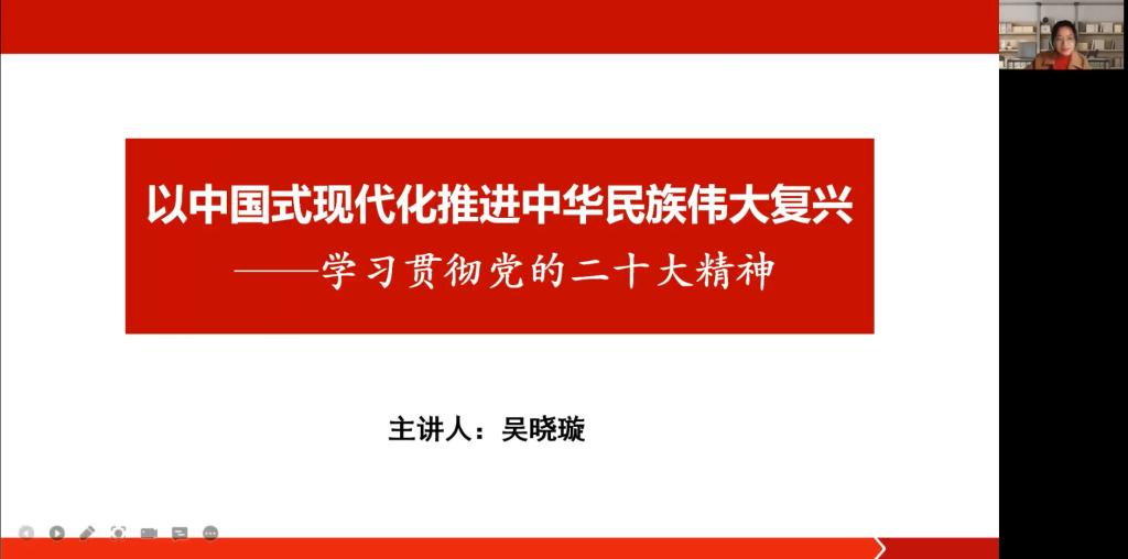 为深入学习宣传贯彻党的二十大精神,根据《九九精品视频一区在线久久久久久久久久毛片精品美女|国产99久久久久久免费看|中文精品99久久国产|国产69精品久久久久9999|精品久久久久久中文字幕无码|亚洲熟妇无码久久精品国产精品99|精品国产天堂综合一区在线开展党的二十大精神宣讲工作的实施方案》,12月15日下午,我校体育学院召开学习宣传贯彻党的二十大精神专题线上宣讲会。会议邀请学校党的二十大精神宣讲团成员吴晓璇博士作专题宣讲,我院党总支全体师生党员、入党积极分子、学院青马工程学员等共计113人参与学习了本次宣讲会。
