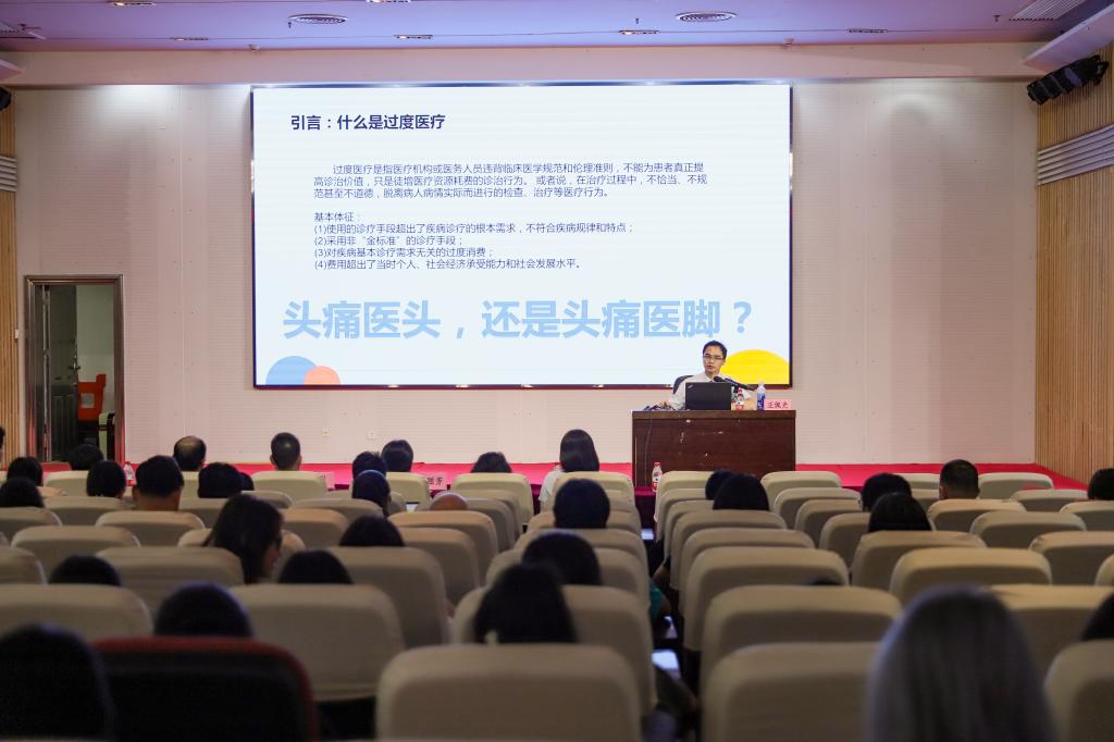 市中医院康复医学科副主任中医师王佩光结合自己多年的中医外治疗法临床经验,向大家介绍了针灸、推拿等中医外治法技术,分析了可通过中医外治疗法治疗的常见病例,让广大师生充分感受到中医外治疗法的功效和魅力。在讲座里,王医师特别强调了“清廉医风”的重要性,提出医务工作者必须保持医者仁心,坚守廉洁自律。在中医外治法体验环节中,王医师细心地为参与体验活动的师生把脉问诊,并根据病征给出针灸、推拿和艾灸等治疗方案,让师生们对中医外治疗法有了更直观的认识。