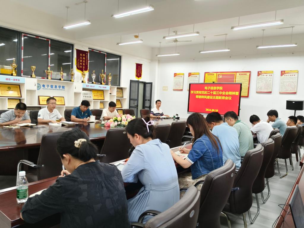 9月20日上午,我校电子信息学院党总支召开学习贯彻党的二十届三中全会精神会议,全体党员教职工参加了会议。