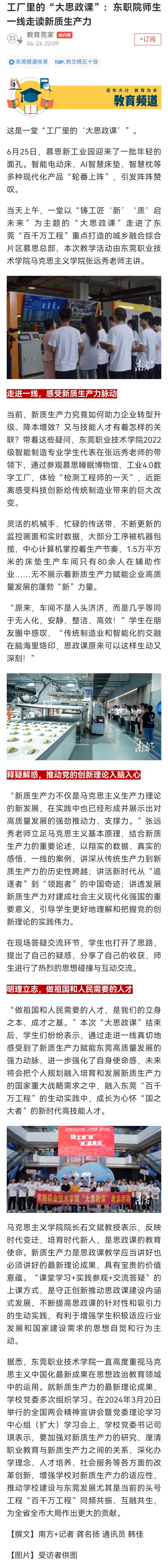 【南方+】工厂里的“大思政课”:东职院师生一线走读新质生产力